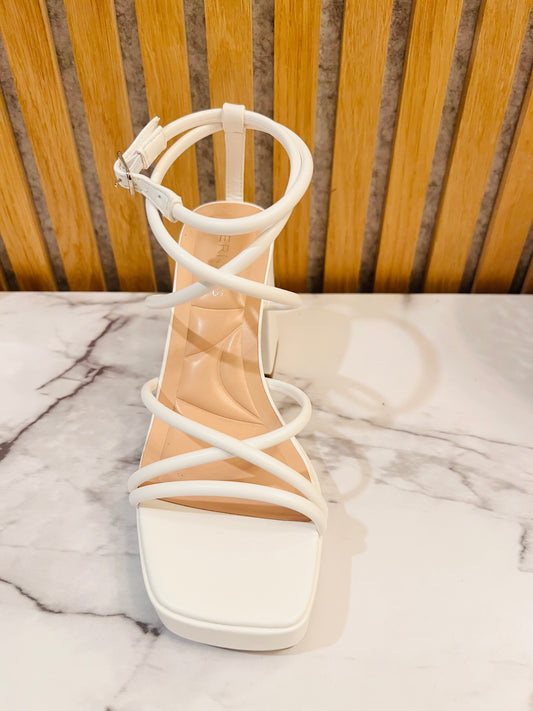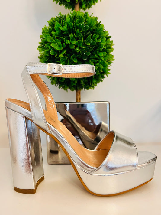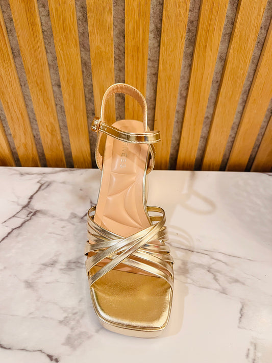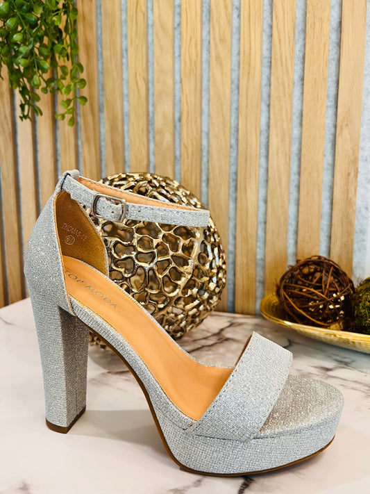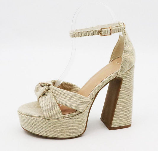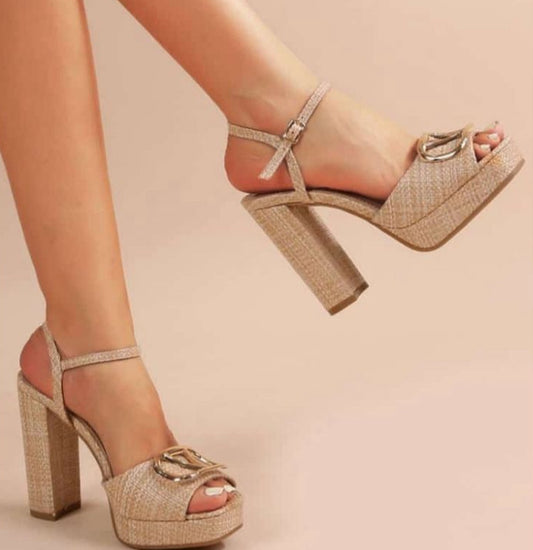 THOMAS-52 CHAMPAGNE platform party sandal with thick high heel