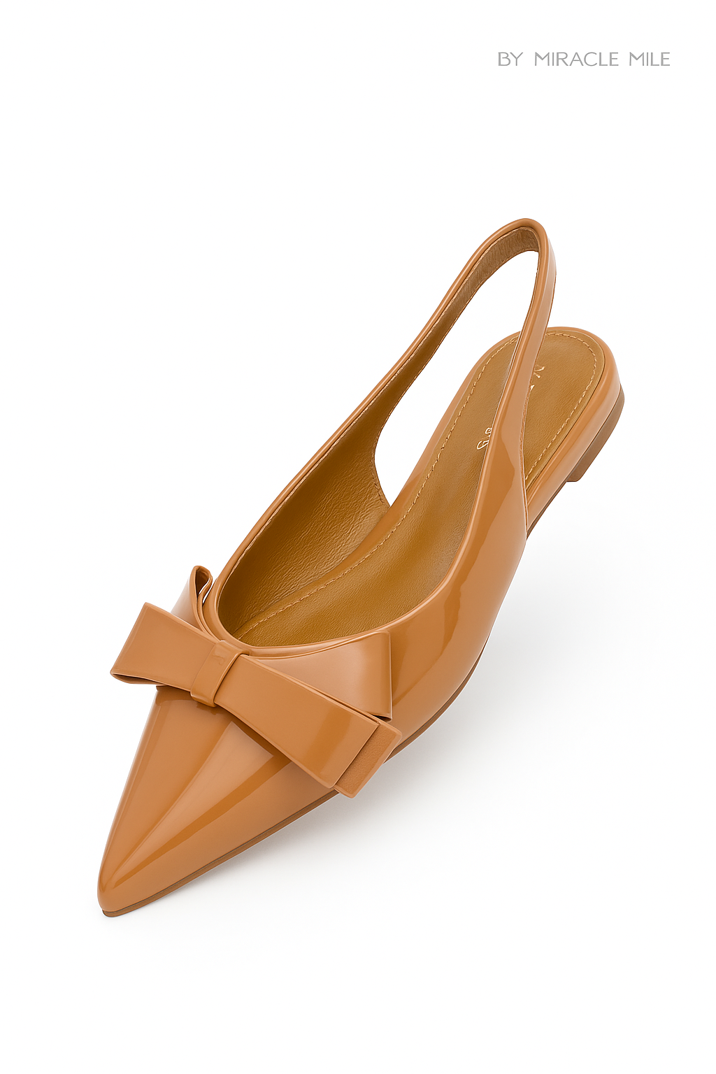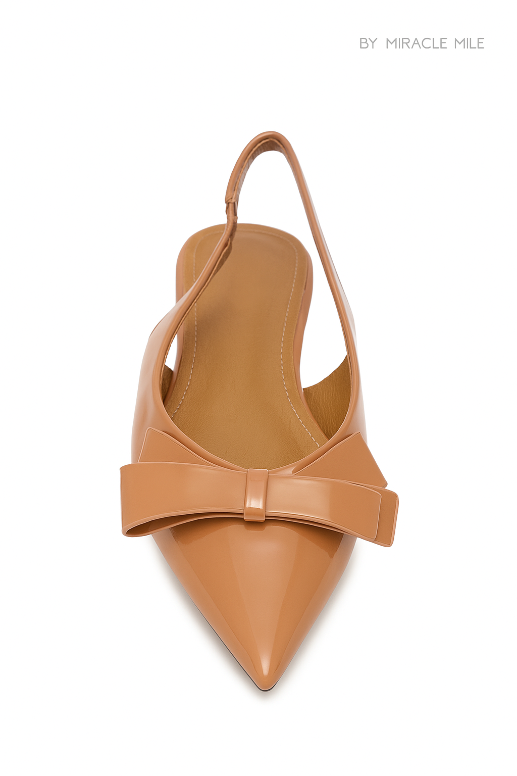 Flat nude de charol con lazo decorativo en la punta. Un diseño elegante y femenino, ideal para combinar con looks casuales o de oficina. Cómodas, sofisticadas y con acabado brillante que eleva cualquier outfit.
