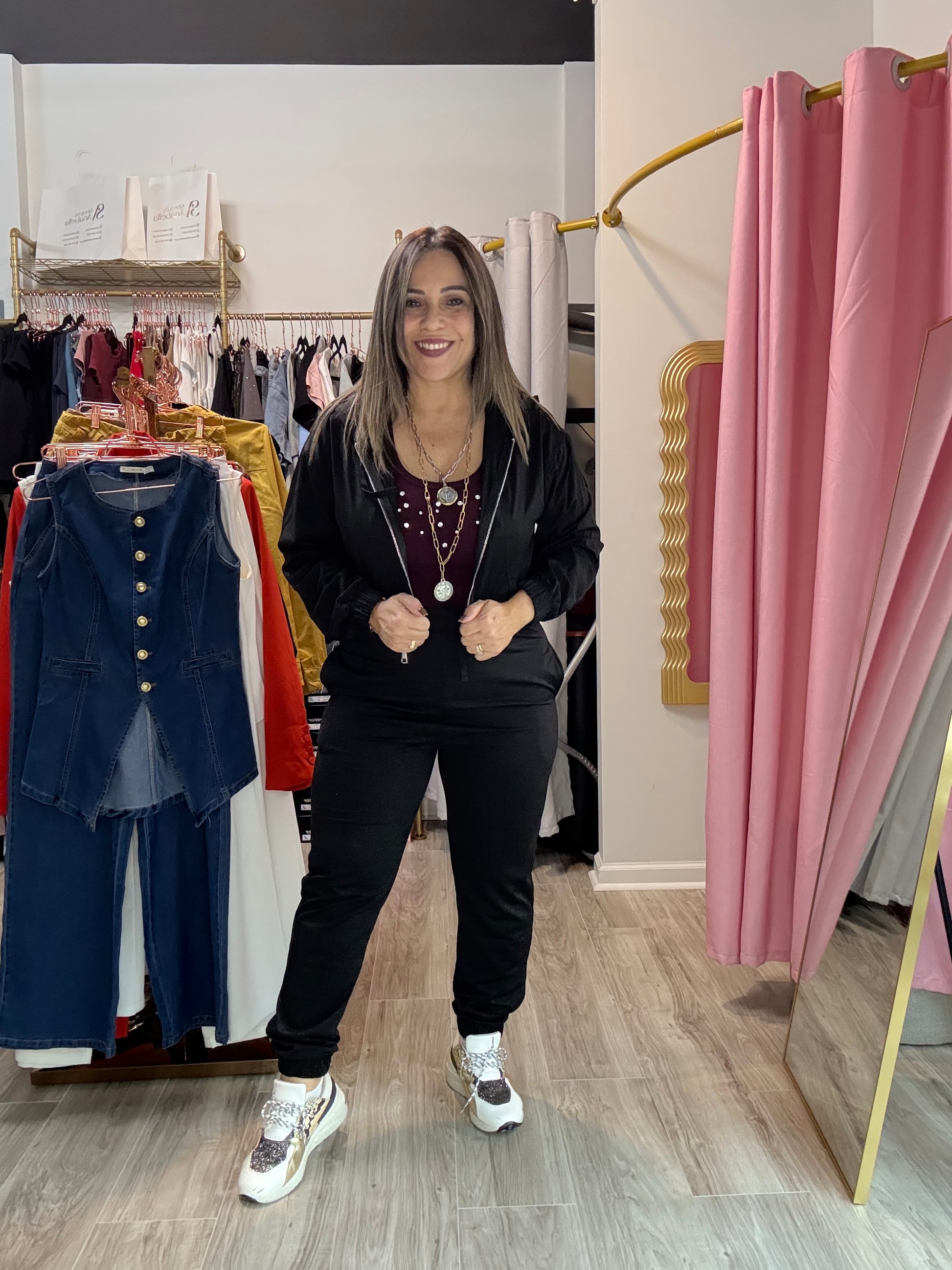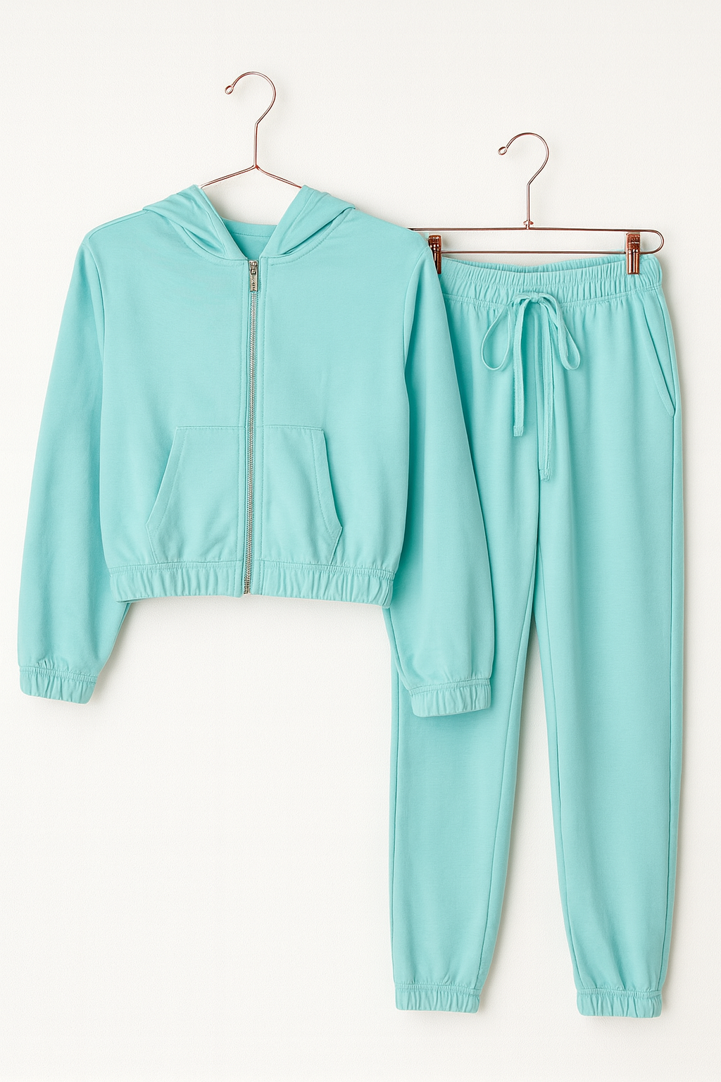 Set deportivo pantalón tipo jogger y chaqueta con cierre y capucha