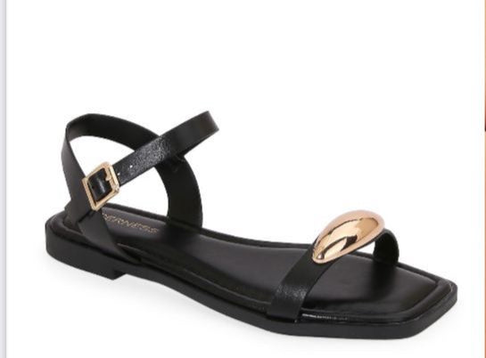 Low sandal with gold detail on the front and a thin strap to tie at the ankle